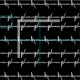 Tela Guay impresa con un diseño de alambre de púas, sobre un fondo negro.