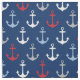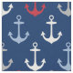 La tela personalizado presenta un patrón de anclaje náutico en azul oscuro, rojo, gris y blanco con color de fondo azul marino (que se puede modificar).