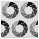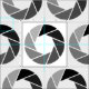 Un patrón compuesto de símbolos de apertura de lente de cámara. El diseño puede ser más personalizado y los motivos se pueden organizar de diferentes maneras.