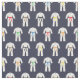 Tela azul oscuro adornada con hileras de trajes blancos de karate, con sus cinturones de colores. Ideal para los amantes del karate y las artes marciales.
