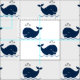Tela Patrón de ballenas náuticas azules y blancas de la