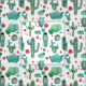 patrón de cactus y ladybug - fondo blanco, divertido y lindo patrón de cactus y ladybug, ambiente verde, fondo blanco