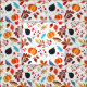 Patrón de caída colorido con calabazas naranjas y hojas y follaje coloridos.