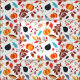 Hojas de otoño coloridas, calabazas y bayas sobre un fondo blanco forman un patrón otoñal