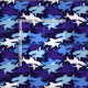 Patrón de camuflaje de tiburón Guay creado con siluetas de tiburón nadando libremente en tonos azules y blancos. Divertido por añadir un toque decorativo del mar a cualquier habitación y muy agradable para cualquier amante de los tiburones.