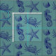 Este es un patrón de playa oceánica con arte en azul marino profundo de un caballito de mar, pez estrella, concha marina y un cangrejo. Se puede personalizar el color de fondo verde marino.