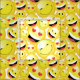 Rasgos de emoji amarilla sonriente que se elevan con motivos de tela