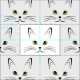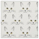 Esta tela divertida presenta un patrón de caras de gato con ojos de color dorado.