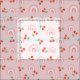 Echa un vistazo a este diseño de moda con arcos de lluvia y cerezas.