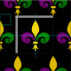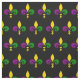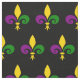 Tejidos con un patrón sin fisuras con fleur-de-lys (flores de lirio) en los colores de New Orleans Mardi Gras; diseño morado, dorado y verde sobre fondo negro