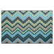 Patrón de chevron multicolor con rayas de zag-zig de tamaño irregular, predominantemente de color azul.