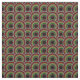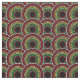 Tela de estilo africano con motivos rojos, dorados y verdes que se superponen en círculos sobre negro