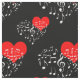 Tela Patrón de corazón cantante. Corazones rojos, notas