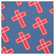 Tela con un patrón cruzado rojo, blanco y azul. La cruz se puede girar en cualquier dirección y el color de fondo se puede cambiar haciendo clic en el botón personalizar. Se ve genial en la tela de lino también.