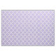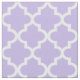 La tela personalizado presenta un patrón de quatrefoil marroquí geométrico blanco con el color de fondo de lavanda claro púrpura (se puede modificar).