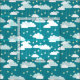 Un lindo patrón de estrellas amarillas que caen de nubes esponjosas de color gris claro y azul. Las estrellas amarillas están pegadas a una línea punteada amarilla y parecen colgadas de las nubes. Esta escena del cielo nocturno es un adorable patrón para los niños.