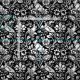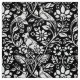 Tela en un William Morris, diseño Art Nouveau de papel tapizado de faisanes y arenas enmarcadas en hojas, viñas y flores - blanco sobre fondo negro