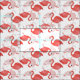 Patrón sin foco con flamencos rosados dibujados en un fondo transparente.