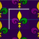Tela con un patrón sin fisuras con un fleur-de-lis; amarillo, violeta y verde fleur-de-lis en los colores de la celebración del Mardi Gras de Nueva Orleans