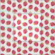 Un lindo patrón con fresas rosas oscuras. El fruto tiene tres hojas verdes encima de cada una y puntos blancos como semillas. Se puede cambiar el color de fondo.