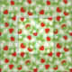 Este patrón floral presenta fresas rojas audaces, hojas verdes y flores blancas en un fondo verde claro, y es una idea linda para los proyectos artesanales de verano.