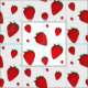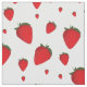 Tela con un patrón de fresas ilustradas de diferentes tamaños sobre un fondo blanco. Elija el tipo de tejido adecuado para su proyecto, seleccione tantos yardas como necesite y, a continuación, agregue este tejido al carro.