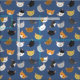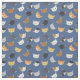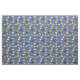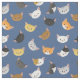 Esta tela divertida presenta un patrón de diferentes caras de gatos sonrientes sobre un fondo azul.