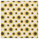 Este tejido de girasol amarillo bonito presenta un patrón repetido de flores de varios tamaños. ¡Alegre y divertido!