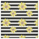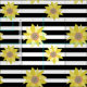 Tela Patrón de girasol Banda blanca y negra