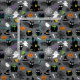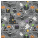 Gracioso patrón de Halloween con murciélagos, gatos, arañas, fantasmas, calabazas, casa embrujada, copas.