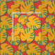 Tela naranja vibrante que atrapa los ojos con hojas tropicales audaces.