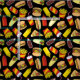 Patrón inmaculado de íconos de comida rápida de color. Patrón sin foco. Color de fondo personalizado.