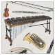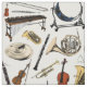 Este diseño presenta un patrón aleatorio de ilustraciones fotográficos de instrumentos musicales utilizados en orquestas sinfónicas, ideal para músicos y amantes de la música.