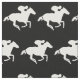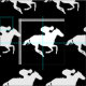 Patrón de jinete galopante sobre fondo negro. ¡Un regalo perfecto para los amantes del caballo! Jockey - una persona que monta en carreras de caballos, especialmente como profesión.