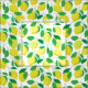 Patrón tropical con limones y hojas dibujadas en Illustrator.