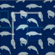 Tela de tejido fino adorable adornado con manatíes, sobre un fondo azul marino. Puede personalizar y cambiar el color de fondo a lo que sea que se ajuste a su proyecto.