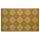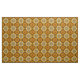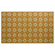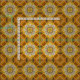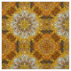 Tonos de tierra otoñales tela poplina de poliéster presenta un patrón de mandala abstracta altamente intrincado creado a partir de la foto de otoño de árboles de arce altos, delgados y horizontales y su follaje dorado y naranja rojo contra un cielo azul claro - una estrecha inspección del patrón revela las ramas de árbol frondosos contra el cielo azul - el centro de mandala es un diminuto sol desde el cual varios elementos geométricos irradian-círculo, estrella, octógono transversal - tema de color es naranja otoñal/oro/marrón/azul - de katz_d_zynes
