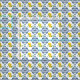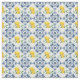 Tela con motivos de bonito con azulejos marroquíes azules que rodean centros de ilustracion de limón