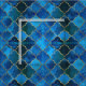 Un patrón de mosaico azul zafiro gemstone & Gold Marroquí, hecho con fotografías reales de cuarzo entre formas de cuaratrefoil de Relieve metalizado dorado. Cada baldosa es una pieza única del cuarzo. Los tonos azules de zafiro profundo se combinan para crear las baldosas de piedra gemela.