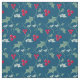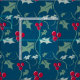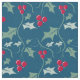 Festividades Navidades de follaje de invierno con motivos de tela con hojas huecas en bayas de invierno gris-verde y rojo brillante sobre un fondo azul oscuro. Arte gráfico original y diseño de Sarah Trett para www.mylittleeden.com