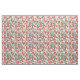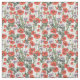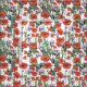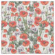 El estiloso patrón floral presenta un "campo" de amapolas rojas y púrpura claro en plena floración sobre fondo blanco