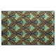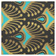Patrón Art Déco dorado y azul sobre un fondo negro.
