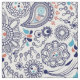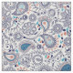 Motivo moderno de conchas paisley. Lágrimas ornamentales y motivos florales en una imprenta sin fisuras en azul oscuro con un acento azul brillante y rojo castaño. Se coloca sobre un fondo blanco.