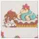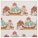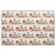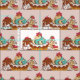 Tela estampada con hileras repetitivas de deliciosos quequitos con batidos y cerezas y heladas. Ilustrado en un estilo retro clásico. Los colores son retro verde, rojo, azul y crema.