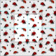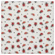 Hermosa tela de mariquita con motivos intrincados de ladybirds rojo dibujado a mano y puntos de polka negro sobre blanco