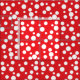 Mezcla de puntos blancos grandes y pequeños con fondo rojo.