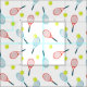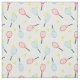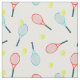 Tejidos con raquetas de tenis ilustradas y patrón de pelotas de tenis. Fondo blanco.