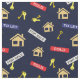 Tela azul marino divertida impresa con casas, llaves y carteles de agentes inmobiliarios como VENDIDO, PARA VENTA y PARA DEJAR. Ideal para hacer almohadas de agencia inmobiliaria, máscaras faciales, manteles y más. Puedes cambiar el color de fondo del azul marino a cualquier color que te convenga.