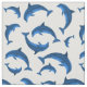 tela de coser gris claro cubierta con un patrón lúdico, saltando delfines. Material de temática costera para uso artesanal o para proyectos de costura.