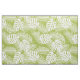 Tela con un patrón repetido de hojas grandes de palma sobre un fondo verde oliva. Moderno y tropical.